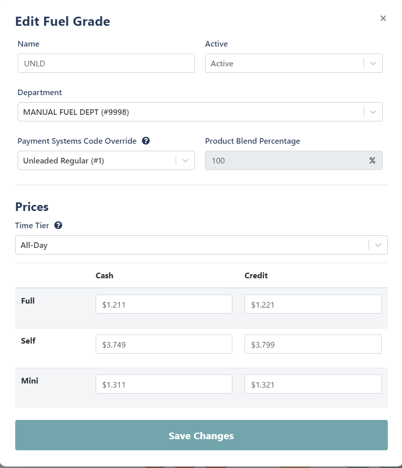 Then, edit your prices for your gas products. If you have a cash and card price, you will edit 6 prices. If you just have one price, then you will edit three.